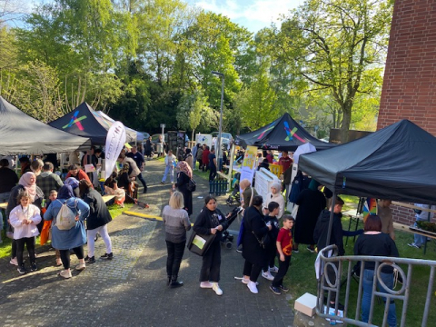 Die Sonne scheint, es riecht nach Waffeln und ein wilder Mix aus Kinderlachen und Musik liegt in der Luft. Es ist Nachbarschaftsfest am Nollendorfplatz in Eving, veranstaltet vom Aktionsplan Soziale Stadt im Rahmen von DORTbunt.nebenan.